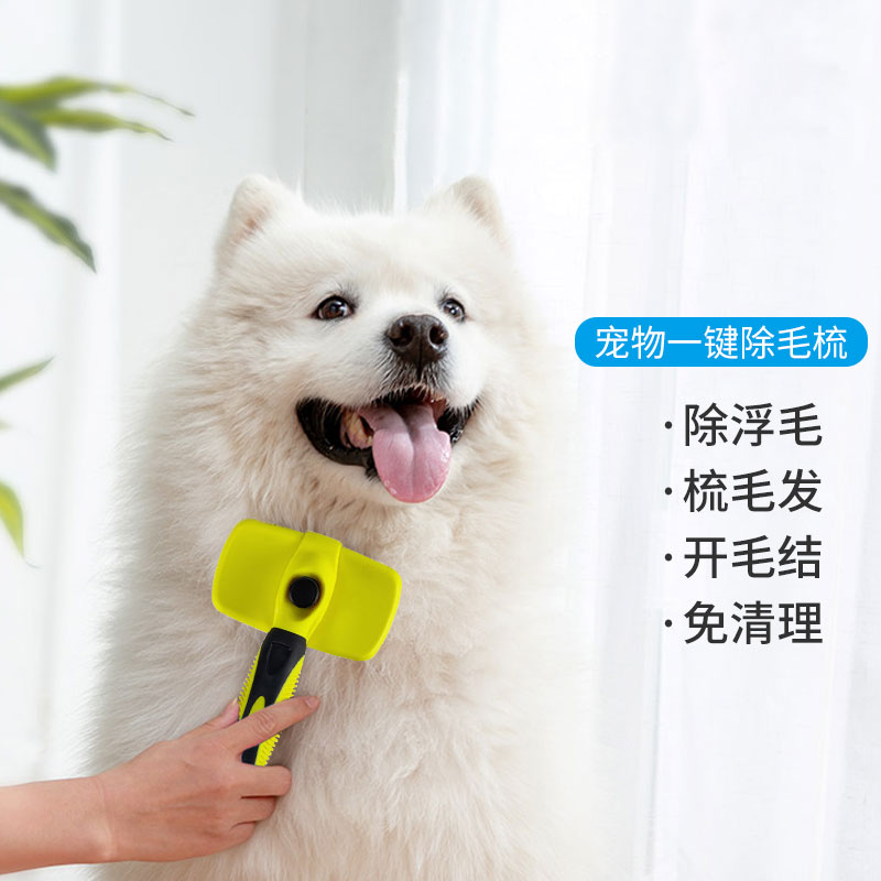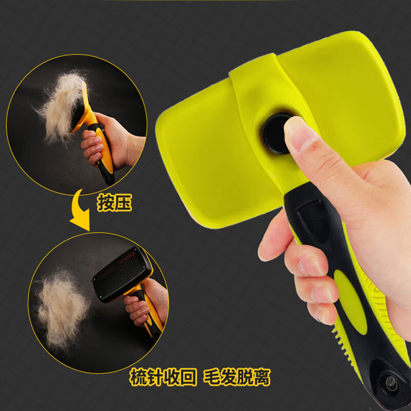 HIDOM 宠物梳毛梳子 泰迪金毛狗狗梳子 美容脱毛梳 用品 一键褪毛 黄色