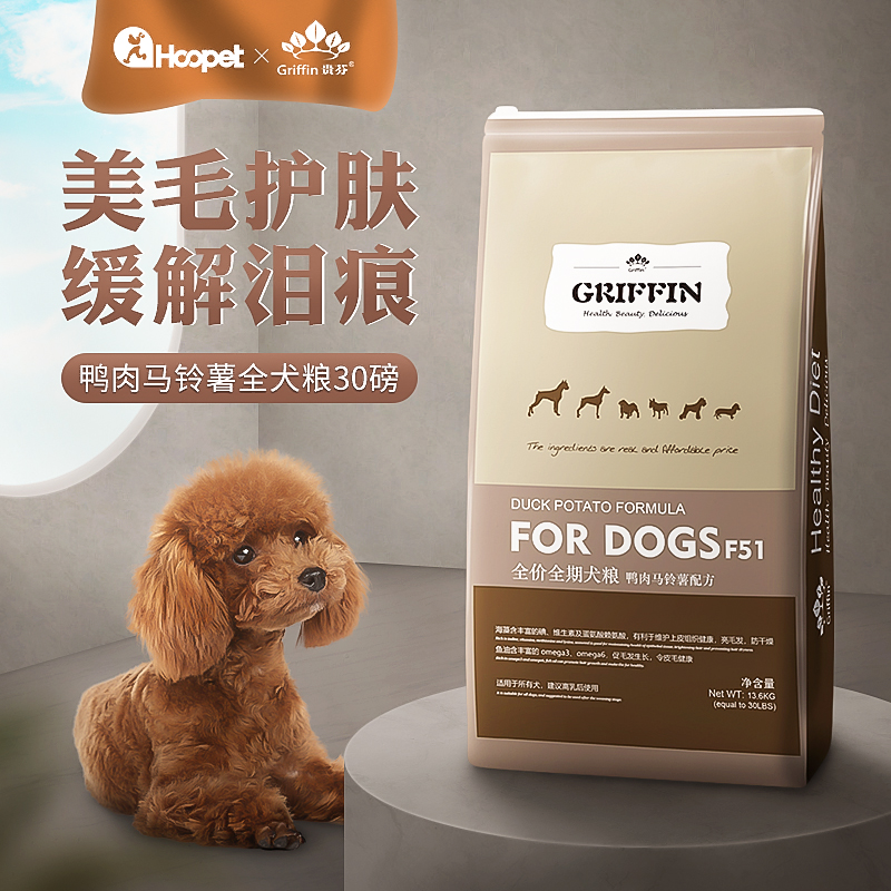 贵芬F51/L31全价犬粮大型犬中型犬美毛护肤宠物鸡鸭鱼肉大狗主粮10kg F51鸭肉全价全期犬粮(13.6kg)