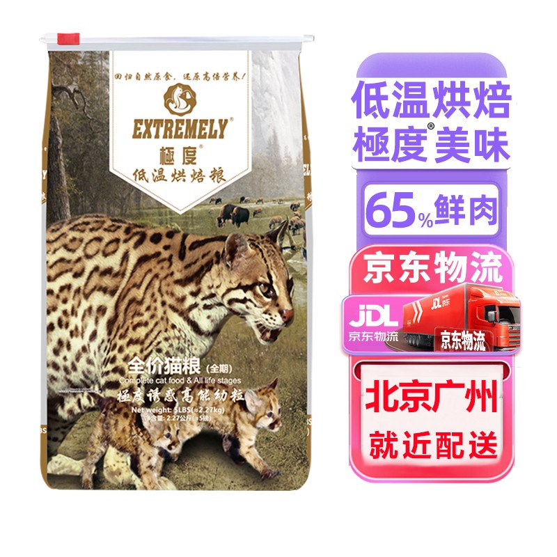极度鲜肉猫粮 低温烘焙猫粮 幼猫成猫老年猫猫助成长易吸收无谷猫粮 全猫种通用全营养小粒猫粮 5磅/2.27kg 小粒(无冻干)东仓