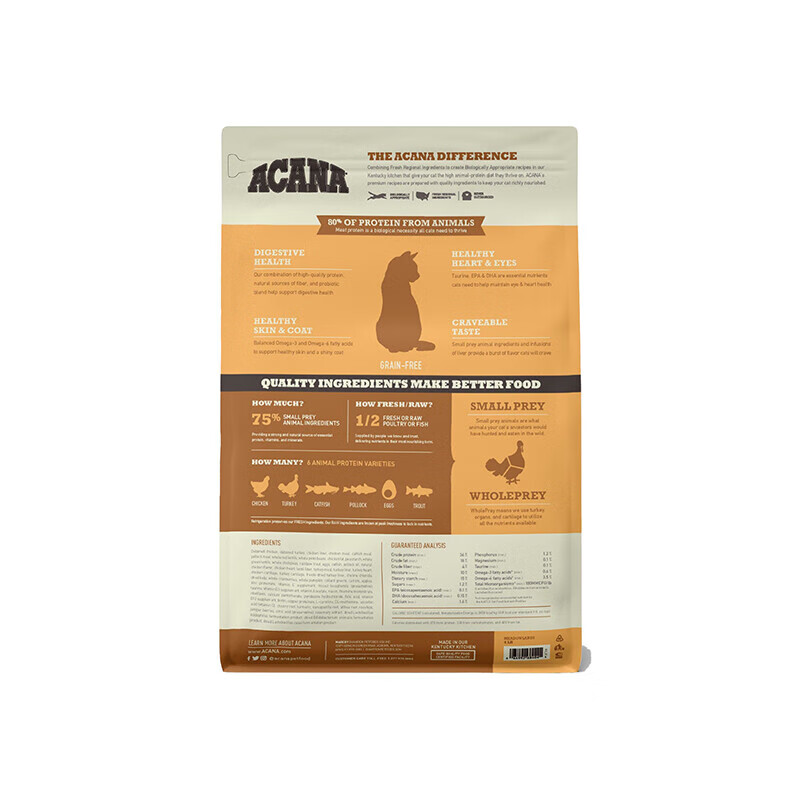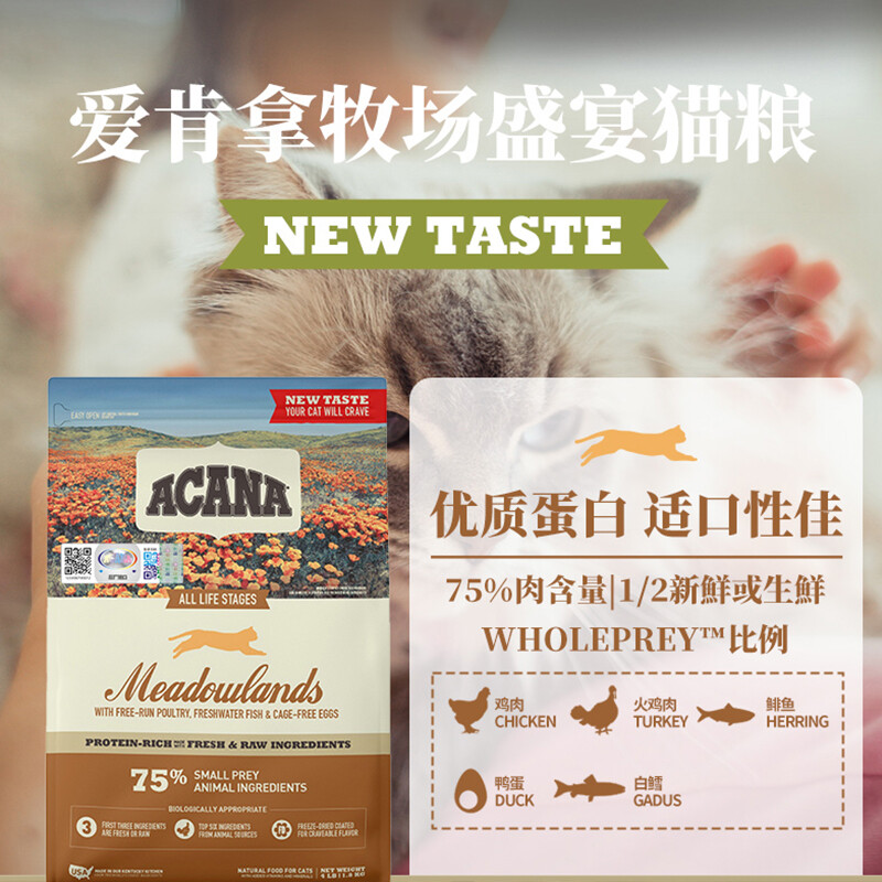 ACANA爱肯拿牧场盛宴猫粮鸡肉味成猫幼猫通用无谷猫粮英美短蓝猫1.8kg美国进口 美版全期鸡肉1.8kg