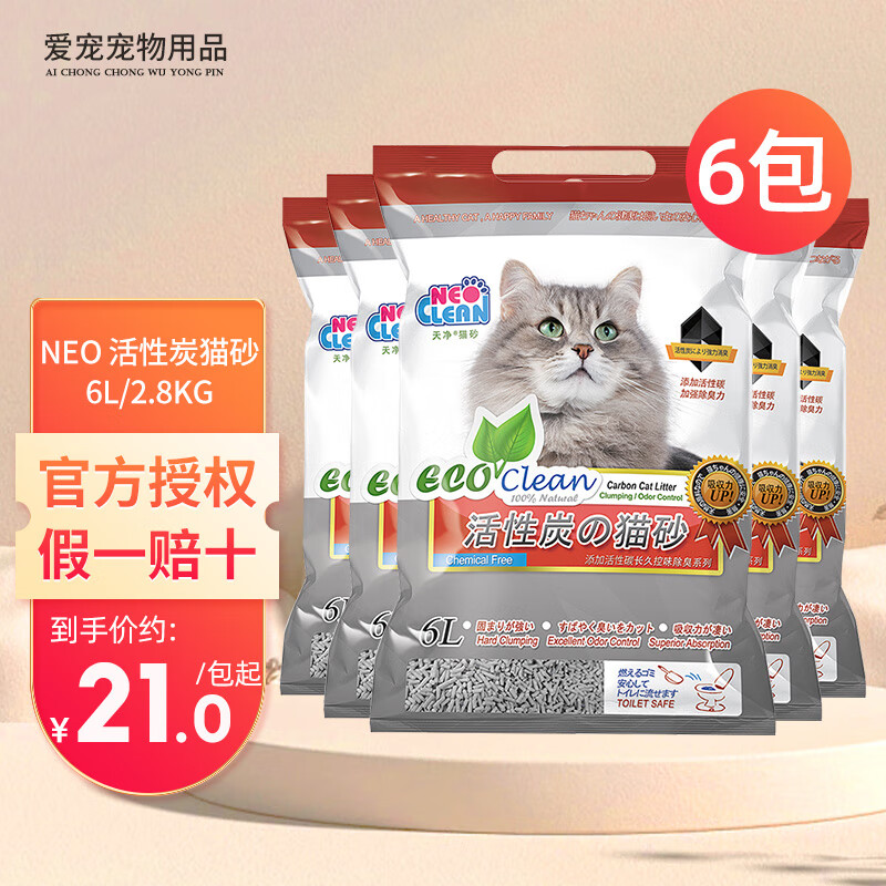 天净(NEO CLEAN)猫砂2.8kg 艾可玉米绿茶豆腐猫砂混合猫砂除臭无尘易结团可冲马桶 【活性炭】豆腐猫砂 6L*6包