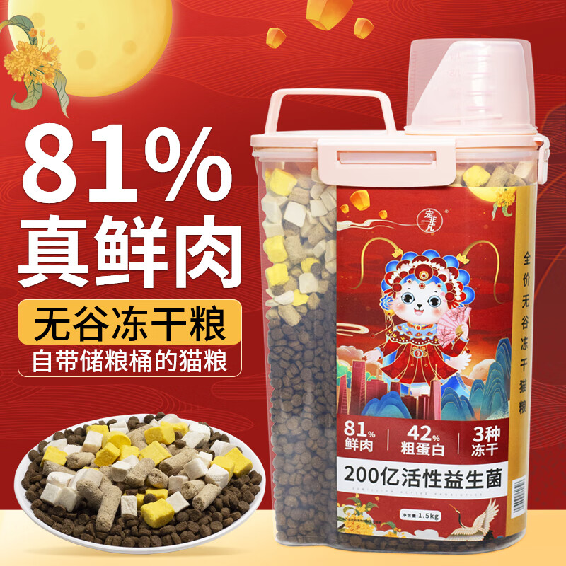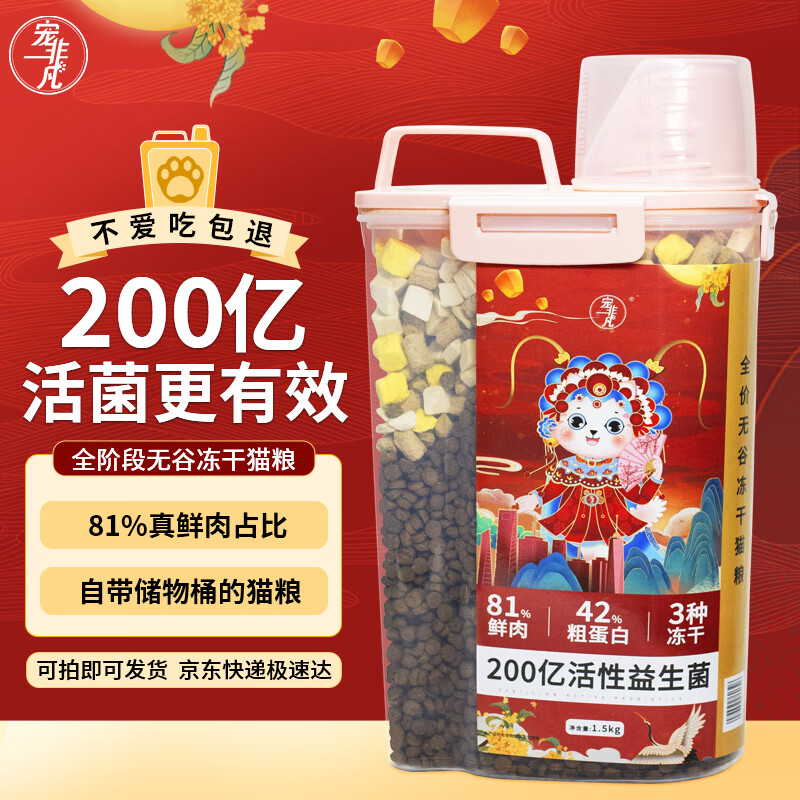 宠非凡 81%鲜肉 全价无谷猫粮冻干1.5kg添加200亿益生菌 幼猫成猫全期增肥发腮