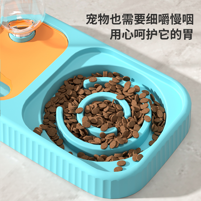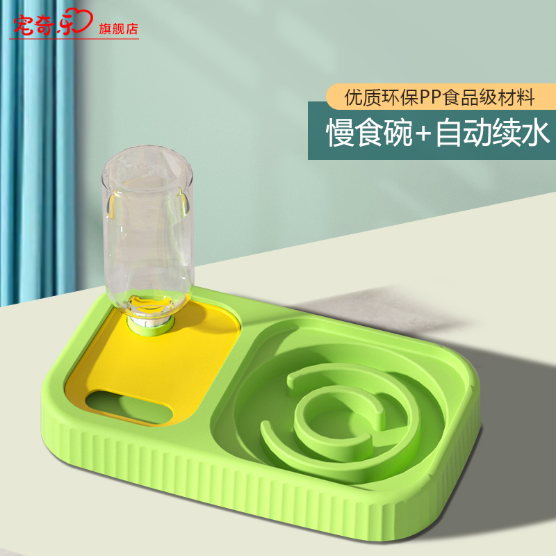 宠初元 宠物猫食碗猫食盆自动喂食器狗狗饭碗自动饮水机幼猫成猫不锈钢双碗慢食碗护颈椎防湿嘴防滑防打翻 单慢食碗 水瓶(黄绿色)