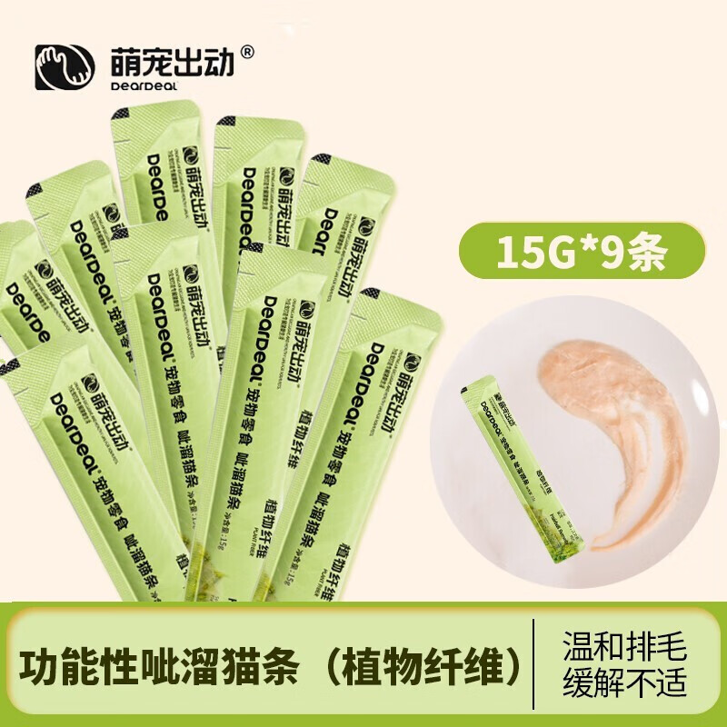 萌宠出动 猫零食宠物猫条成猫奶幼猫通用猫咪零食湿粮 【温和排毛球】猫条15g*9条