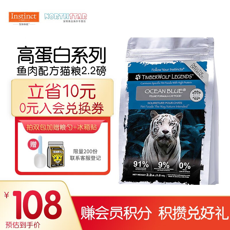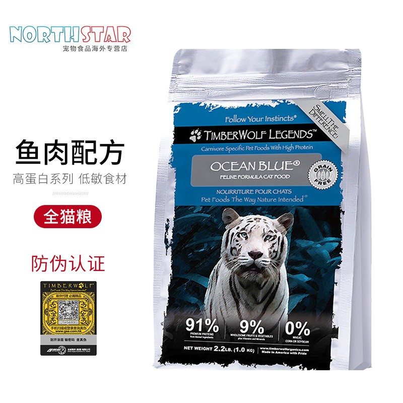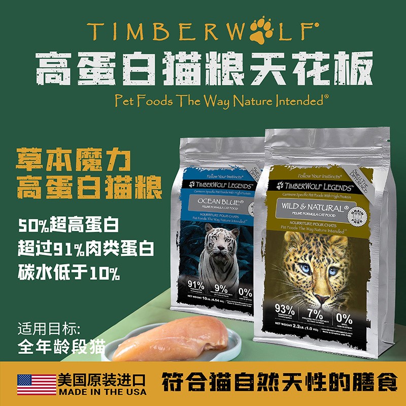 Timberwolf草本魔力无谷鸡肉鱼肉配方幼猫成猫高蛋白进口全猫粮 高蛋白鱼肉配方猫粮 2.2磅/1kg