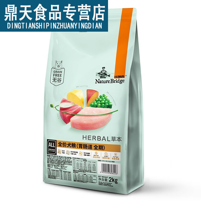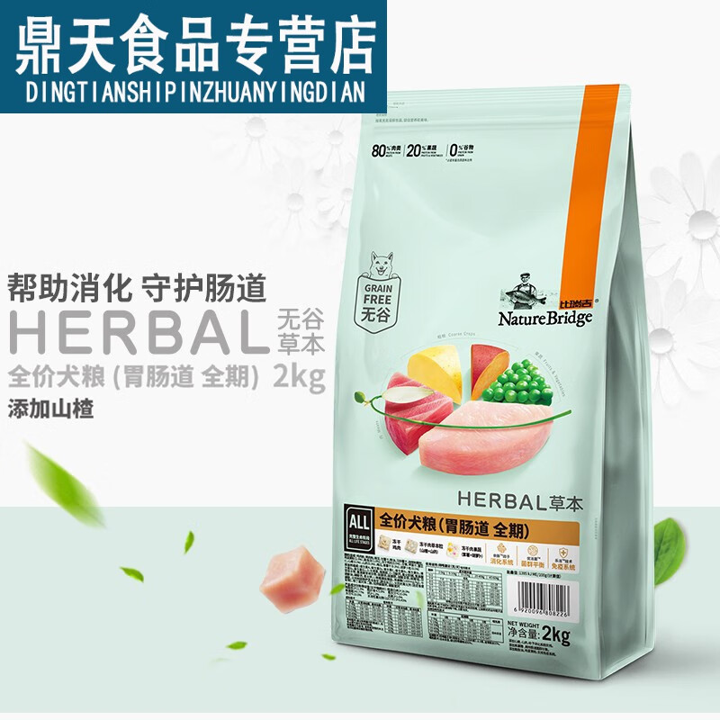 比瑞吉无谷草本全价胃肠道调理处方粮成幼犬敏感肠胃健脾助消山楂开胃 犬粮2kg