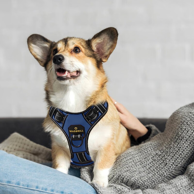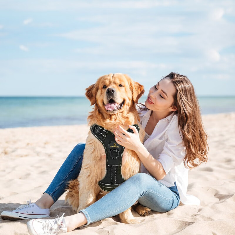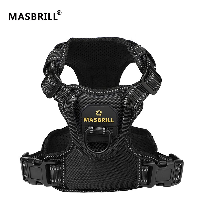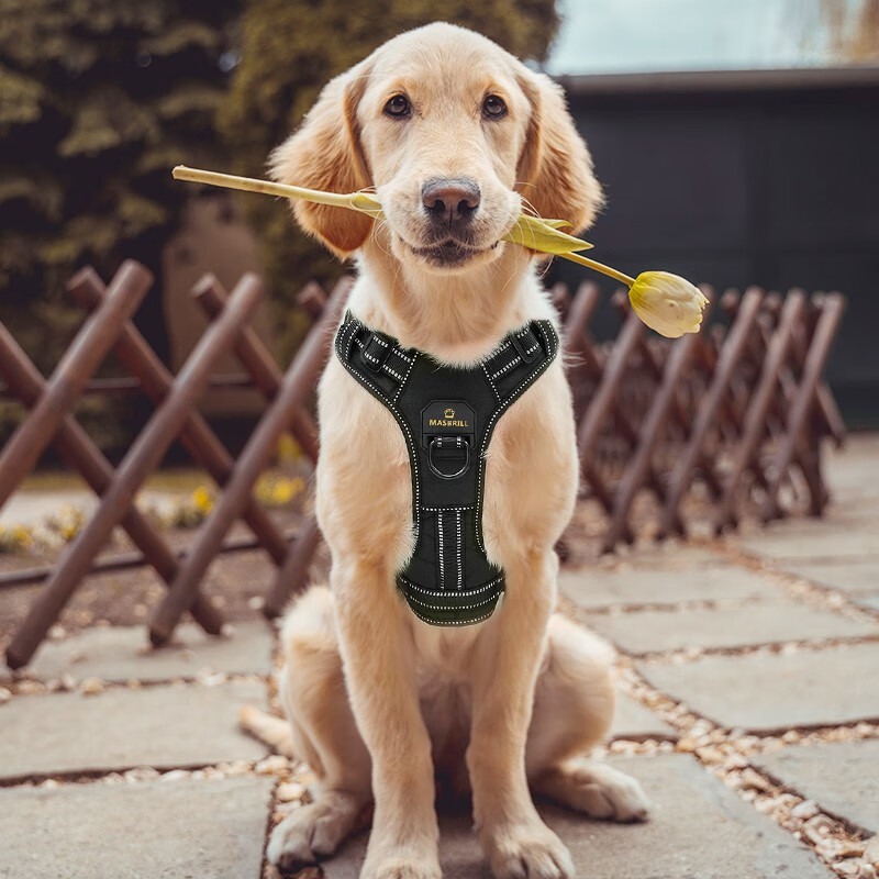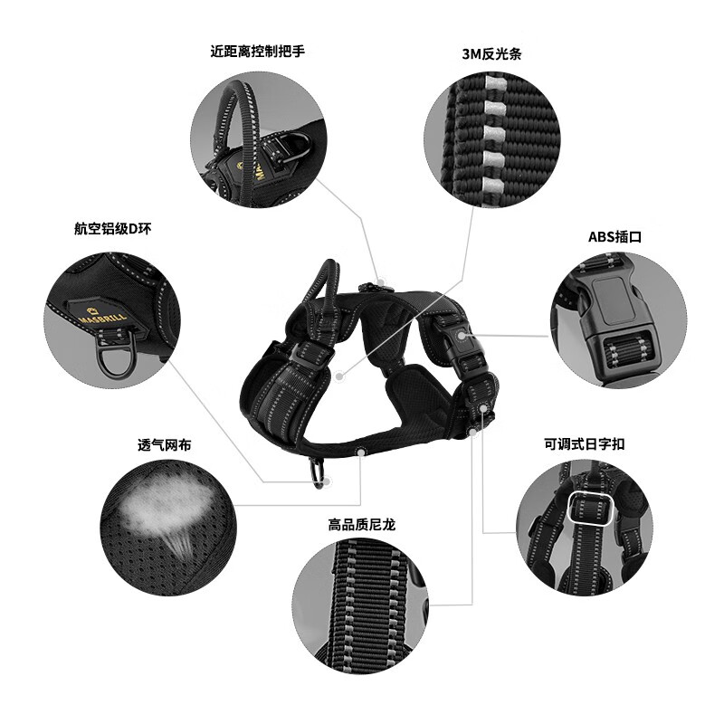 玛思贝瑞(MASBRILL)狗狗胸背带 可调节松紧背心式狗绳牵引绳 小大型犬金毛柴犬泰迪拉布拉多 黑色 L 适用胸围66-90cm