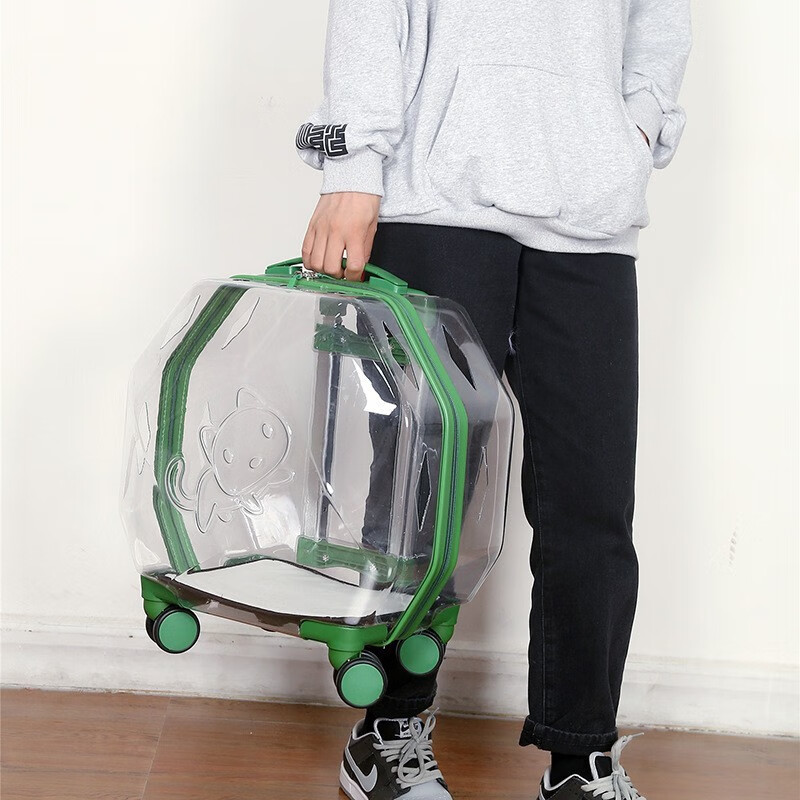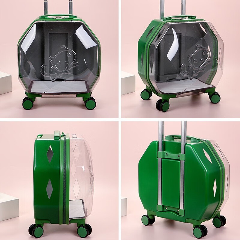 仅爱宠猫咪外出猫包双肩太空包透气便携大容量宠物背包猫狗出行拉杆箱 菱形拉杆箱全透明粉色