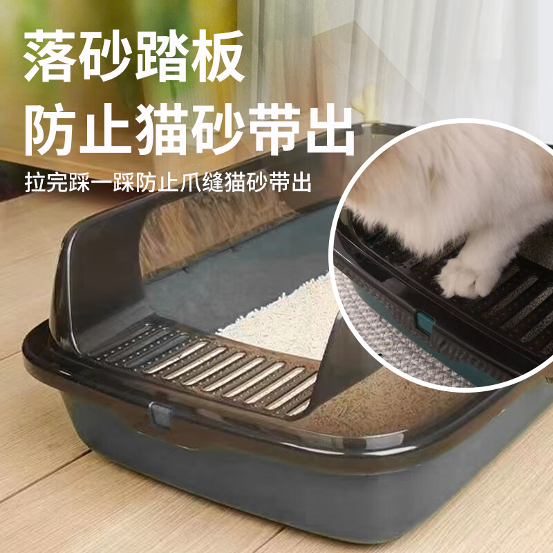 沃趣猫砂盆半封闭式踏板敞开防外溅猫砂盆幼猫厕所 猫咪用品