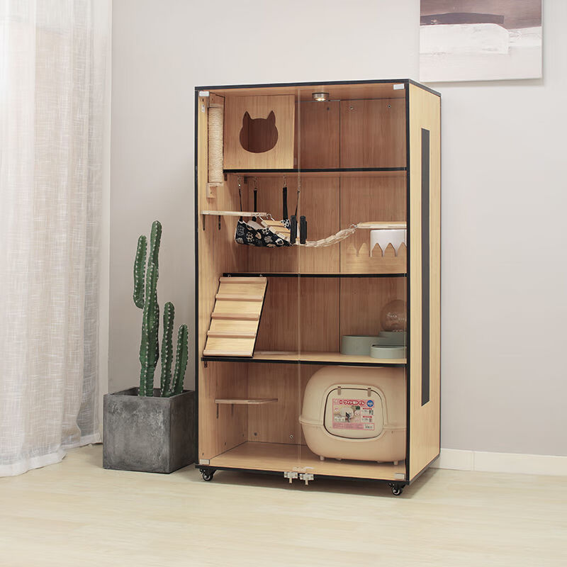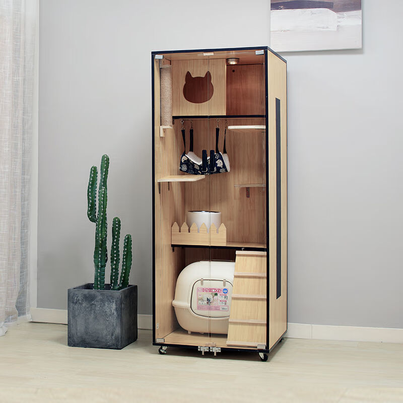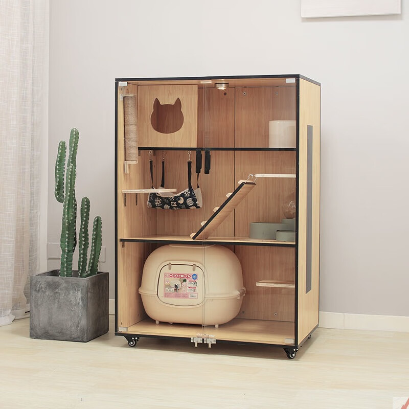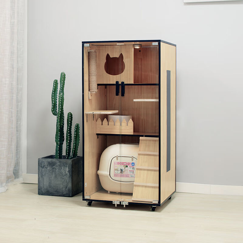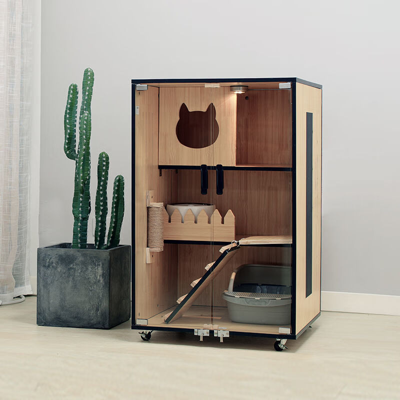 小米城堡 猫别墅木质猫舍猫笼子 家用双层三层的室内大型木制繁育猫公寓 包安装 K-1 高90*宽60*深60