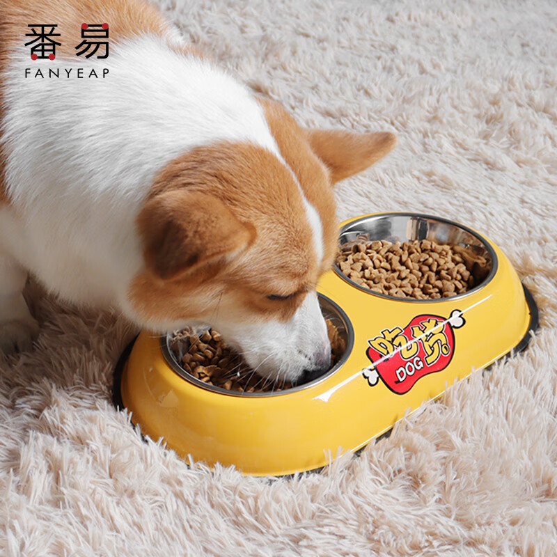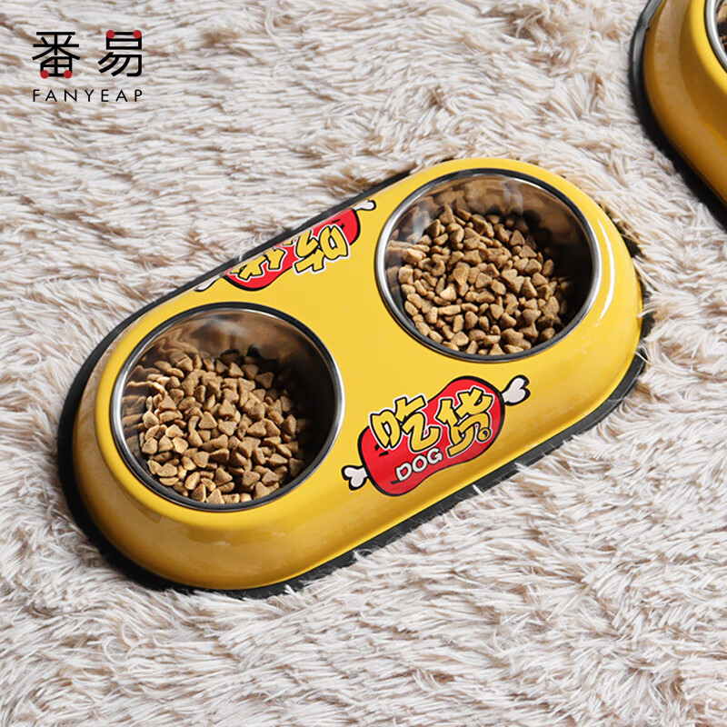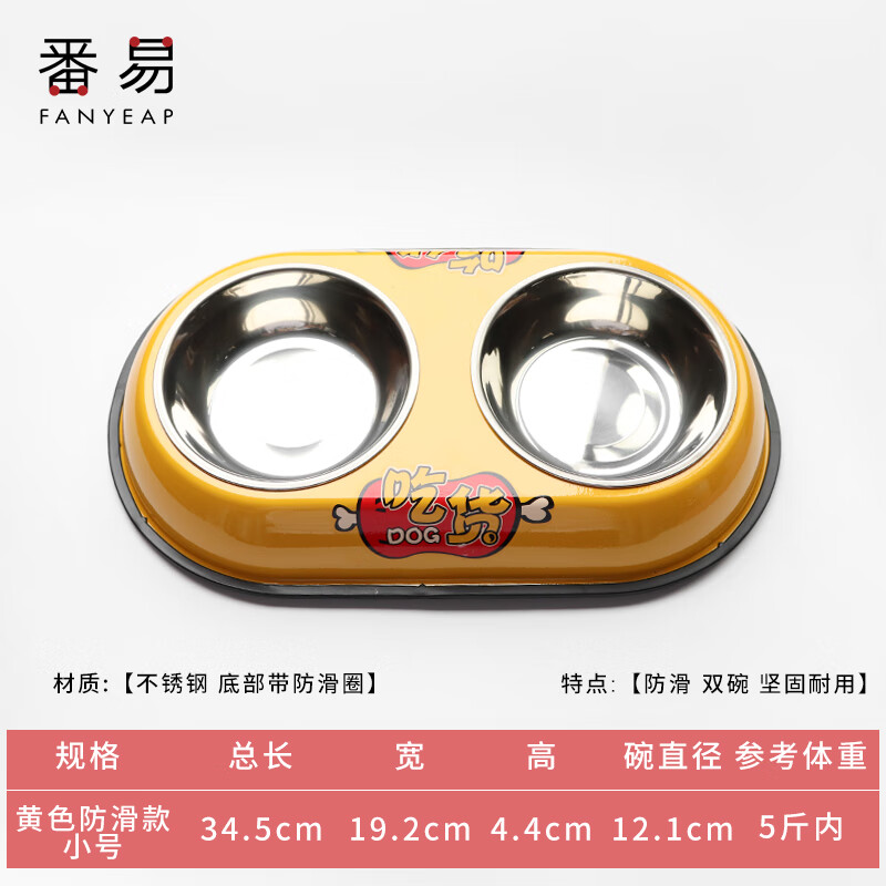 番易打翻饭盆宠物用品狗碗猫碗双碗狗盆自动饮水食盆狗狗碗猫咪水碗防 黄色防滑款小号1个 建议5斤内