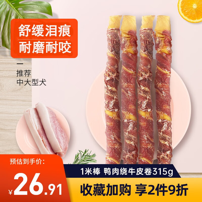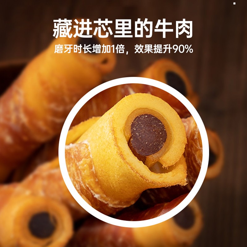 疯狂的小狗夹心磨牙棒狗零食鸡肉牛皮卷耐咬鸭肉中大型犬夹心棒洁齿狗零食 【升级夹心 舒缓泪痕】鸭肉缠牛皮卷315g 推荐
