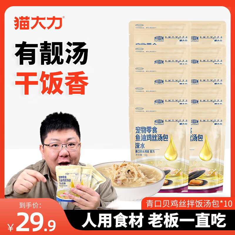 猫大力罐头补水汤包幼猫成猫通用补营养湿粮罐头宠物骗水猫大力 【青口贝鸡丝拌饭汤包】*10