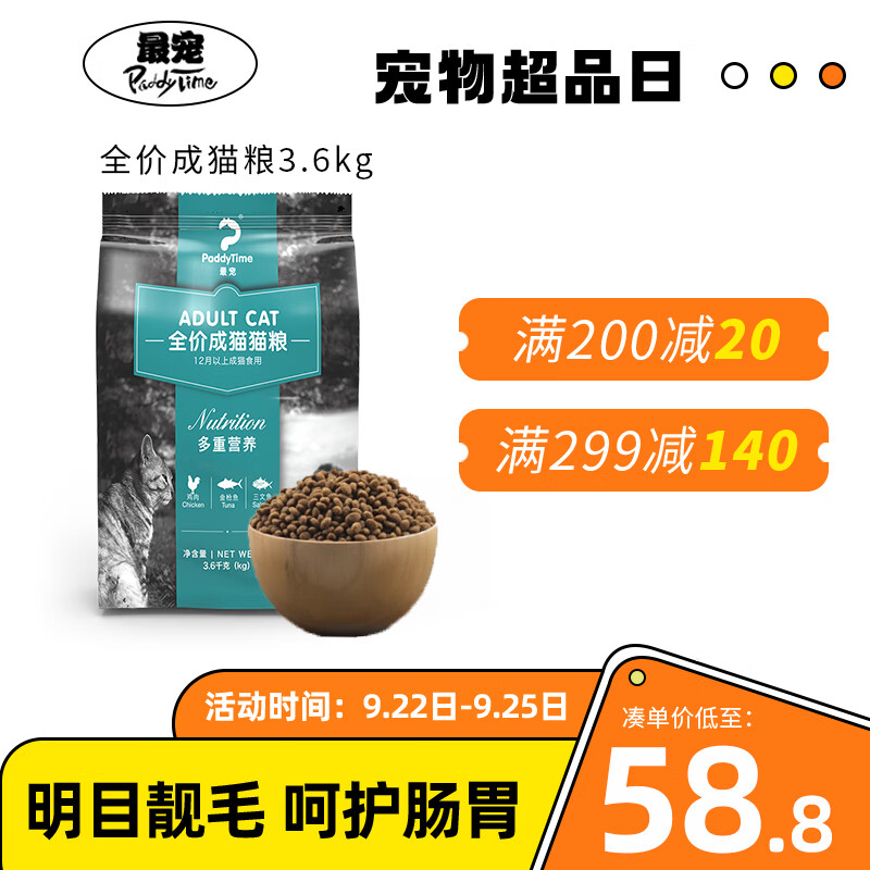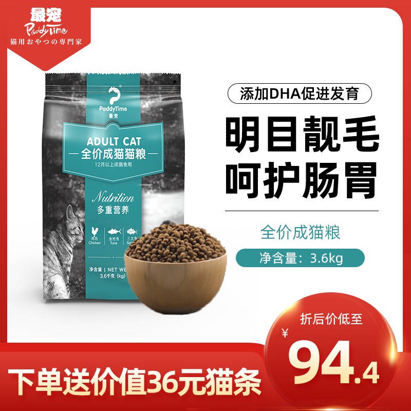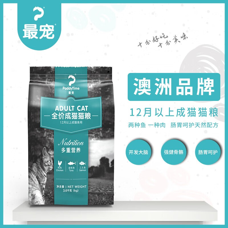 澳洲品牌 最宠(Paddy Time)猫粮成猫全价通用猫粮10kg营养天然配方英短蓝猫猫粮宠物猫干粮 全价成猫粮3.6kg