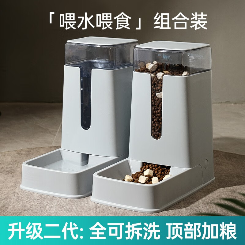 Kimpets猫咪饮水机自动喂食器猫宠物饮水器狗狗喝水器流动水不插电不湿嘴 可视窗组合套装(灰色)