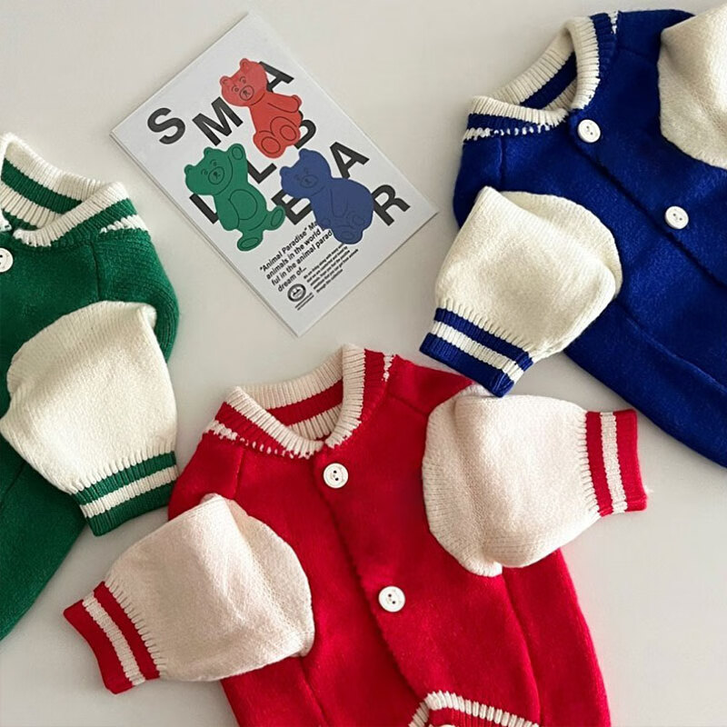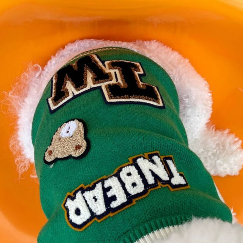 微舒宠物休闲棒球服针织开衫秋天保暖宠物毛衣中小型犬猫咪衣服秋冬季 绿色字母 XS(建议体重1-3斤)