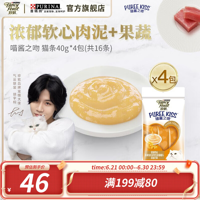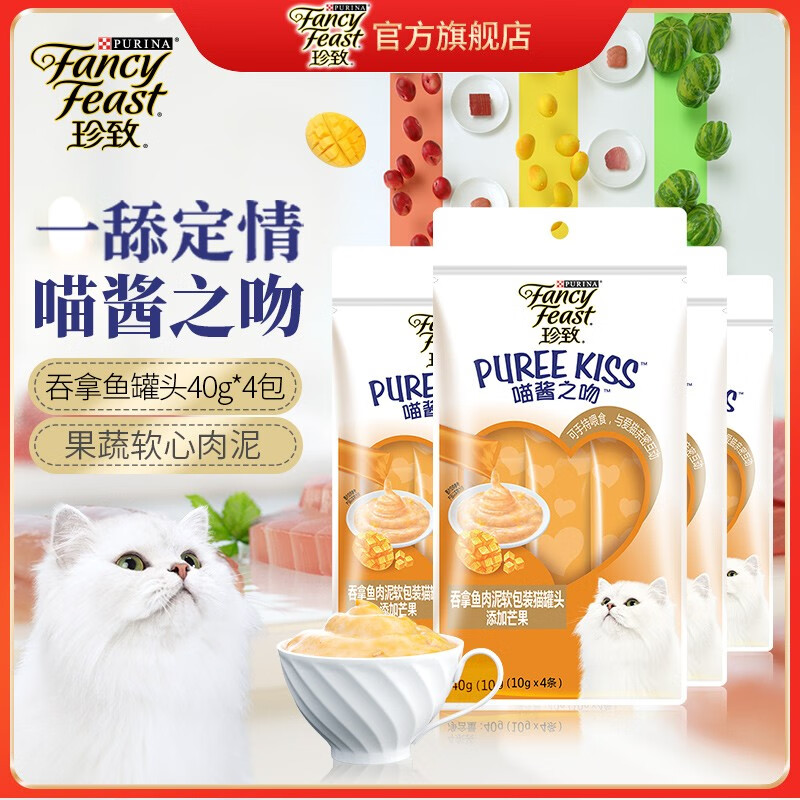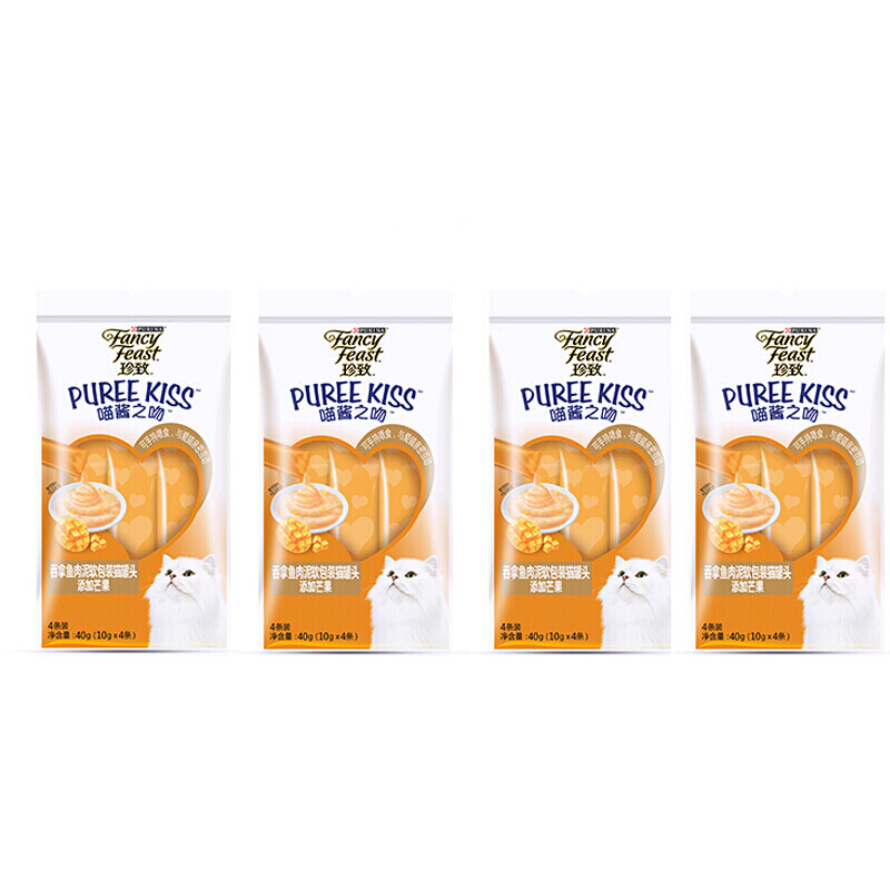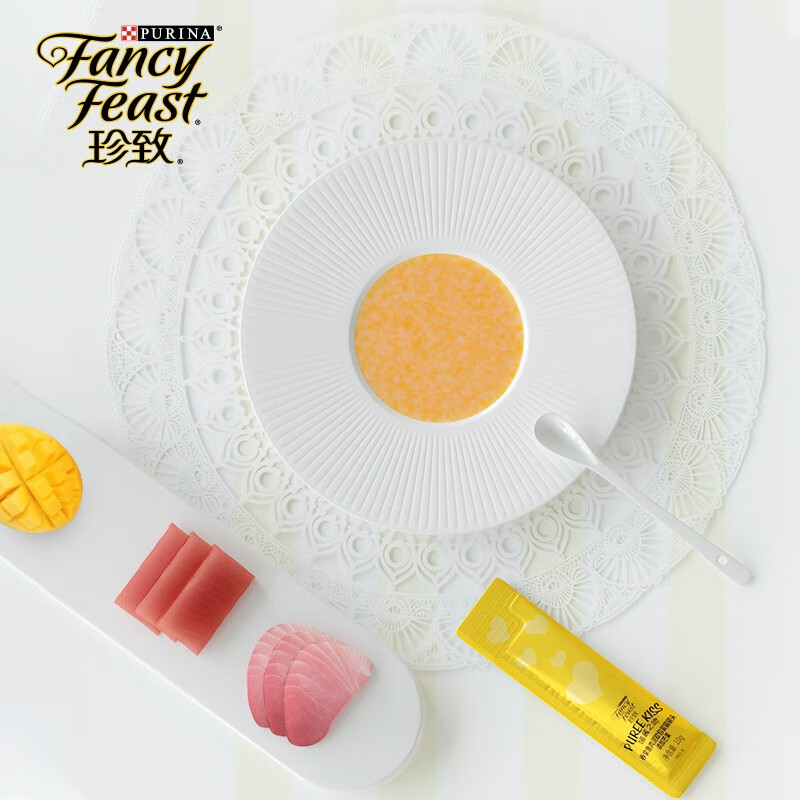 珍致(FancyFeast)猫条猫零食 泰国进口猫湿粮 妙鲜肉泥包果蔬搭配 吞拿鱼芒果味40g*4包(16支)