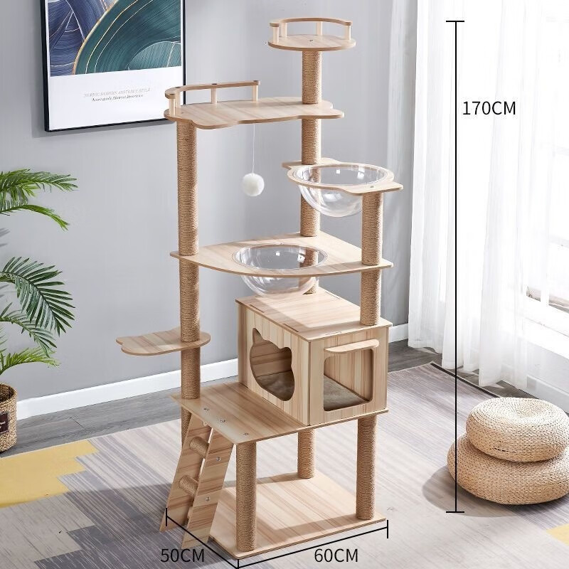 MamyPets大型猫爬架猫窝猫树一体剑麻猫抓板猫架猫抓架柱跳台通天柱太空舱 五星级乐园(八层猫窝屋一体)