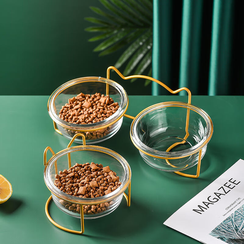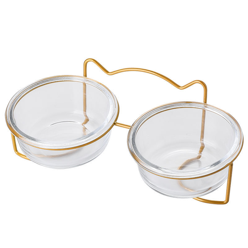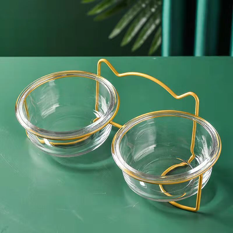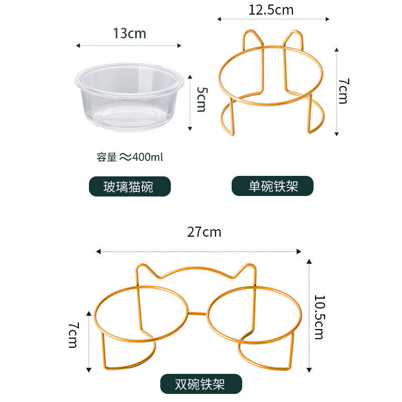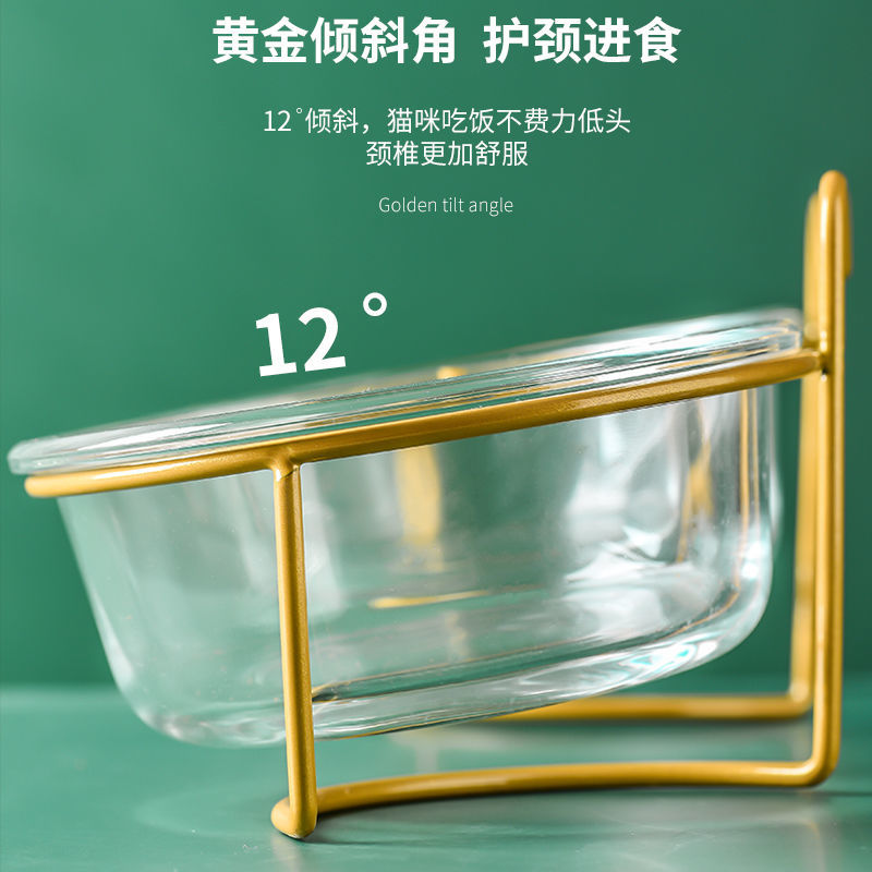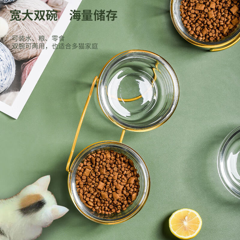猫碗防打翻猫食盆猫咪陶瓷碗玻璃碗饭碗双碗猫粮碗宠物碗猫猫用品 【仅剩15件】双碗 琉璃金【支架】 【乐来食-开心进食】-活动明天结束