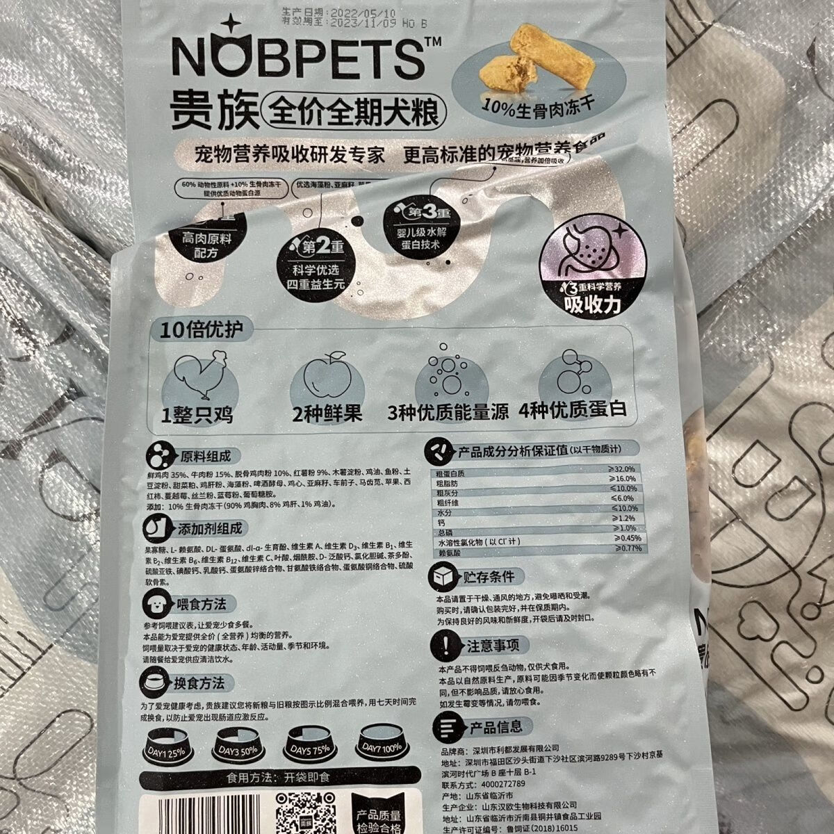 贵族猫粮臻享狗粮添加10%冻干生骨肉500g2kg全价全期鸡肉牛肉通用型 500g试吃装(50g*10包)