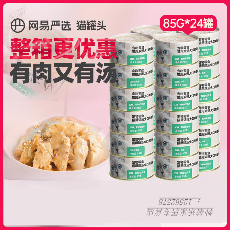 网易严选猫罐头24罐整箱猫咪零食罐头非主食罐猫条湿粮浓汤大肉罐 【浓汤大口肉】鸡三文鱼 24罐
