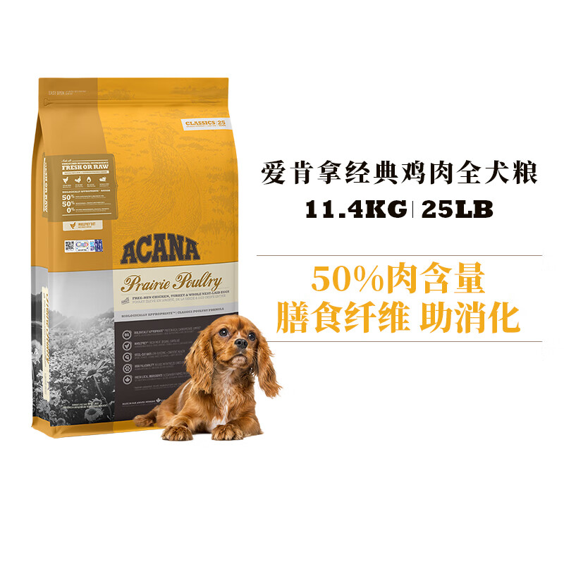 加拿大进口ACANA爱肯拿经典鸡肉狗粮无谷美毛亮肤全犬粮11.4kg