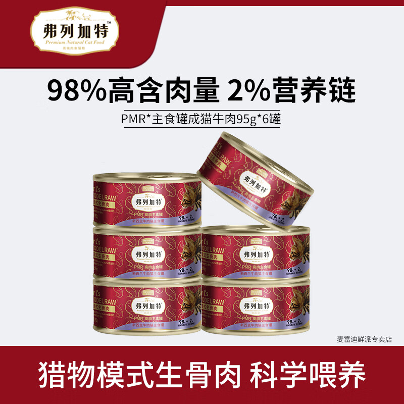 弗列加特主食猫罐头 生骨肉罐高蛋白成猫幼猫通用型猫拌猫饭湿粮 牧野牛肉95g*6罐