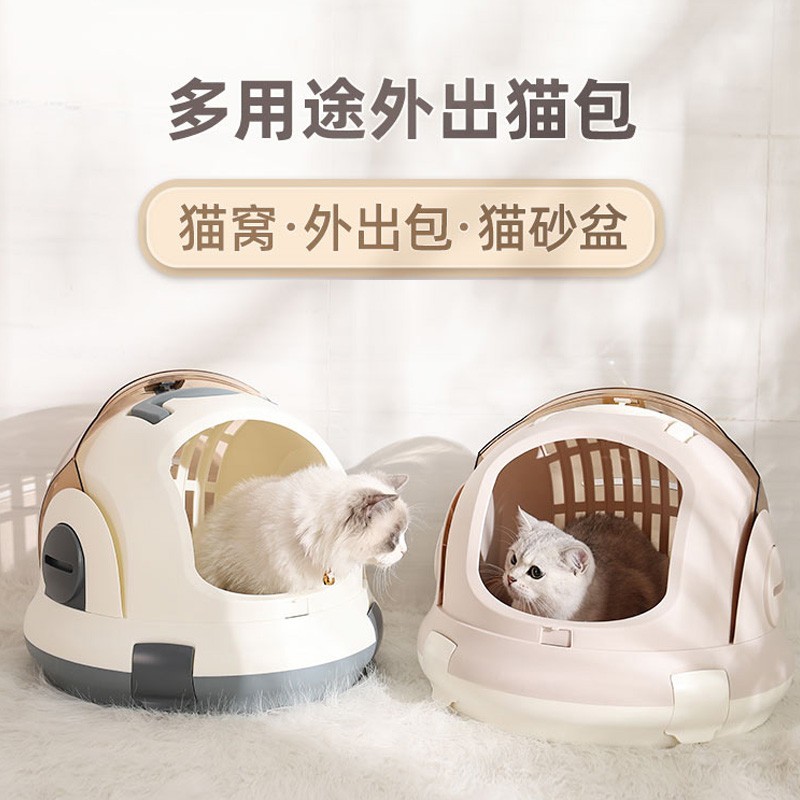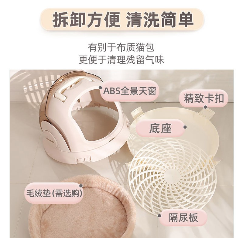 hoopet猫包外出便携太空舱狗狗猫笼子航空箱猫窝猫咪宠物大容量手提背包 绅士亚灰 毛绒垫 直径45.5*高39.5cm(18斤内猫狗适用)