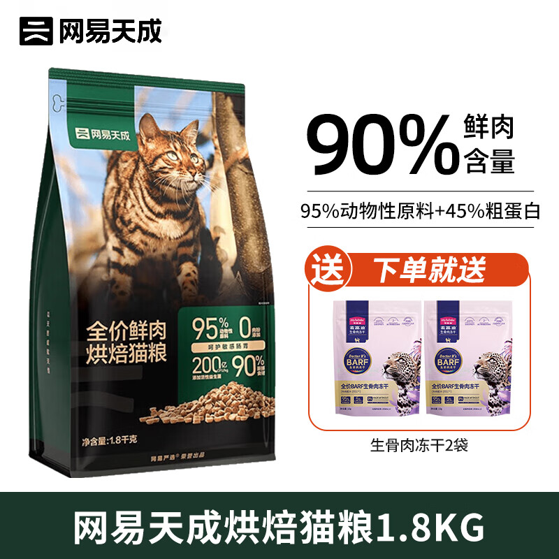 网易严选鲜肉低温烘焙全价猫粮 天成单一肉源成猫幼猫通用猫干粮 鸡肉味 1.8KG