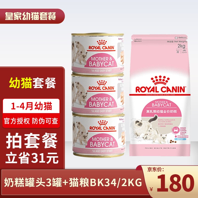 皇家ROYALCANIN慕斯幼猫1-4个月离乳期奶糕孕猫罐头湿粮猫零食195g/罐 【干湿搭配】1-4个月幼猫套餐