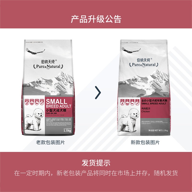 伯纳天纯宠物狗粮小型犬成年犬健胃促吸收犬粮1.5kg口感升级柯基 小型成犬泪痕管理2kg