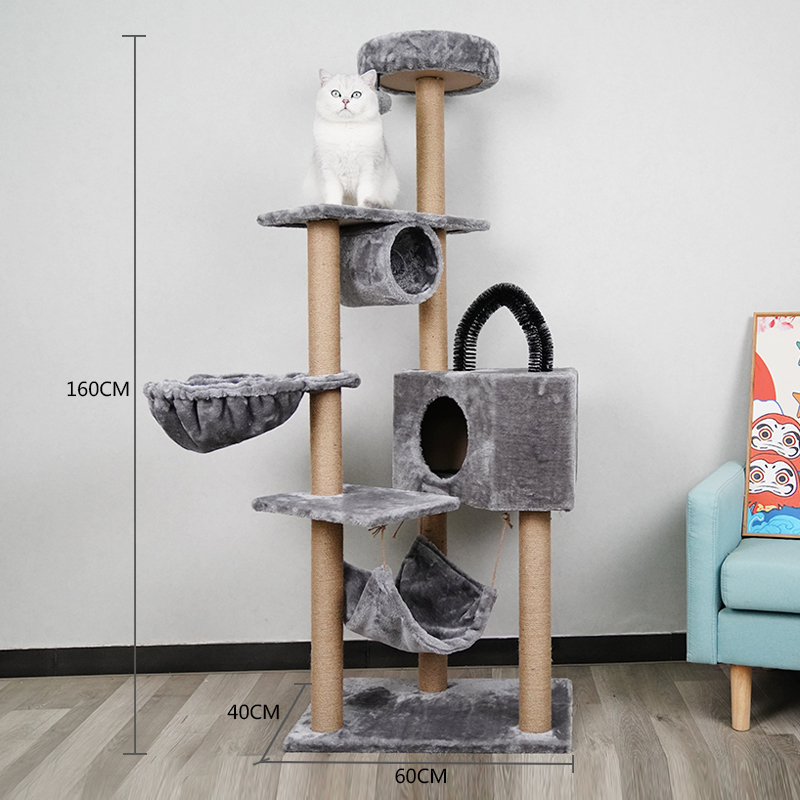猫窝四季通用四季藤席猫抓板猫爬架大型猫抓柱密度猫树猫窝一体出口猫跳台 011浅灰
