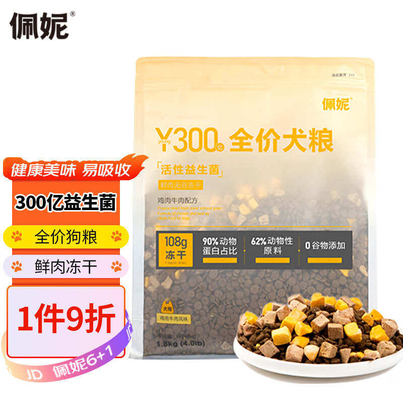 佩妮6 1全价冻干狗粮 金毛泰迪柯基比熊萨摩耶拉布拉多小/大型成犬幼犬粮 实惠装:鸡肉牛肉味1.8kg*2袋