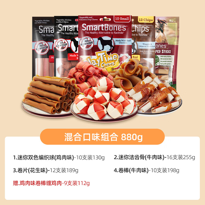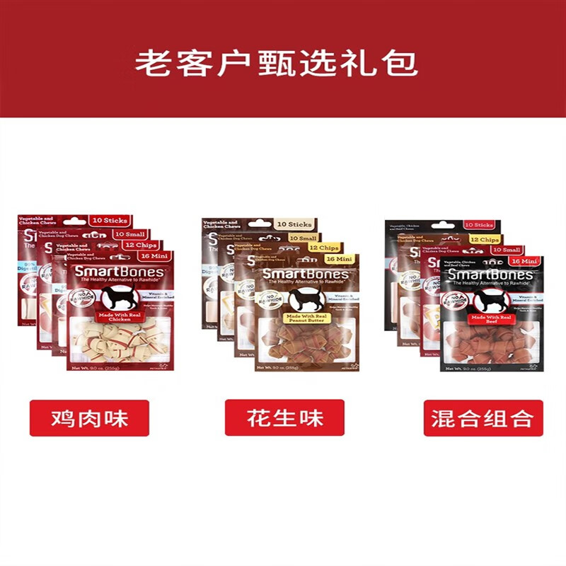SMARTBONES狗零食礼包洁齿骨狗狗磨牙棒鸡肉幼犬小型犬咬胶宠物 混合组合 4包礼包含4包产品