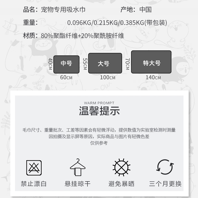 茨格曼 宠物吸水毛巾【中号】猫咪狗狗洗澡浴巾速干强吸水宠物美容用具用品
