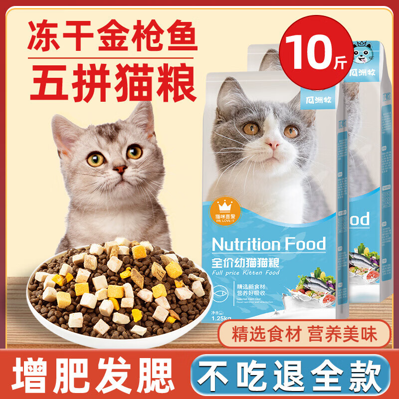 风宠猫粮幼猫营养发腮全阶段无谷1-12月20英短蓝猫流浪猫天然奶糕5斤 幼猫猫粮【鱼肉 鸡肉】增肥发腮 0000kg000