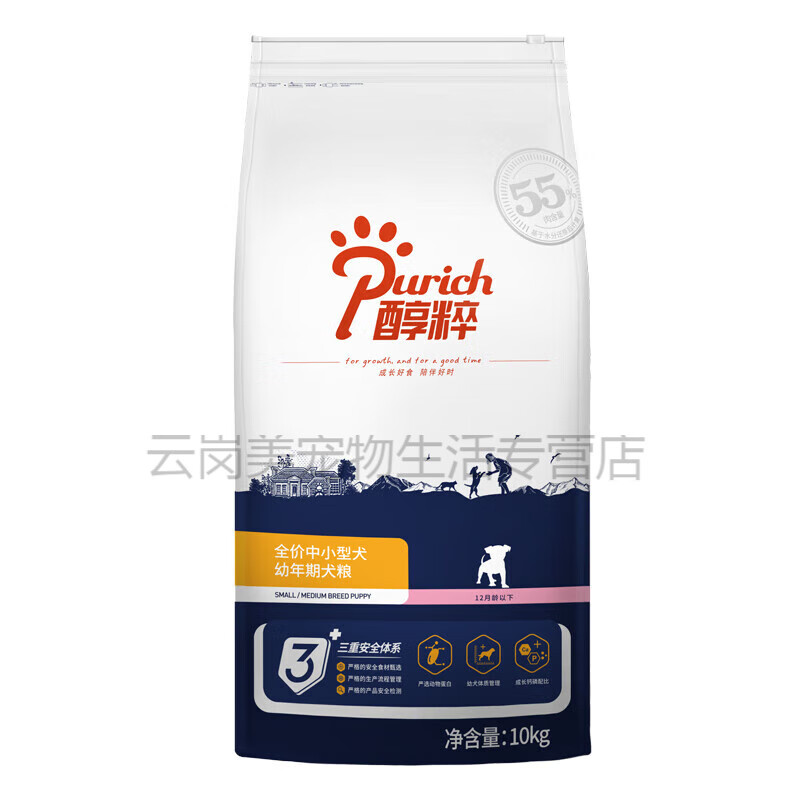 醇粹(Purich)狗粮幼犬粮通用型全价幼狗奶糕中小型犬20斤装 55%肉含量 10kg /包
