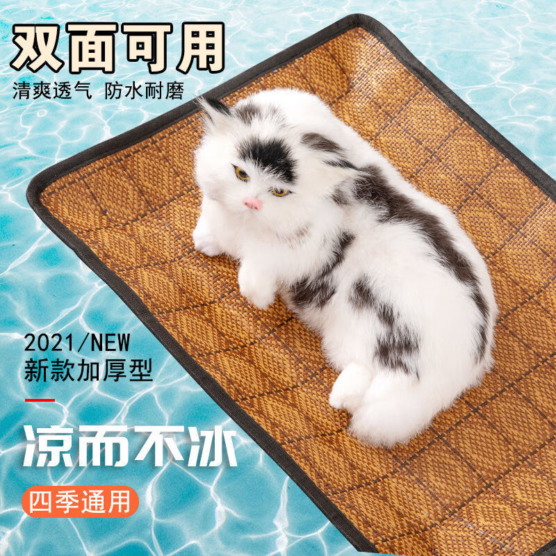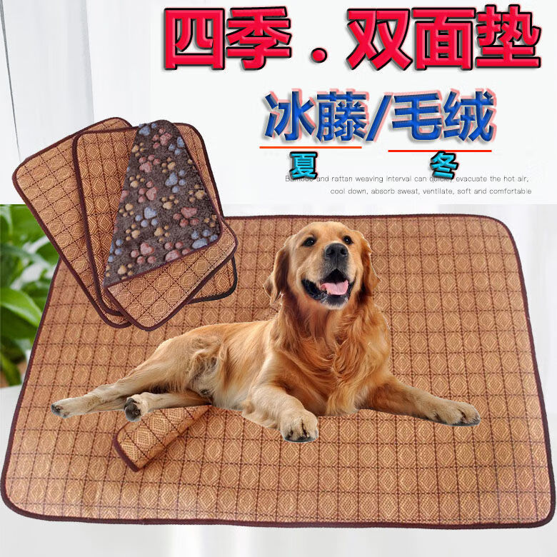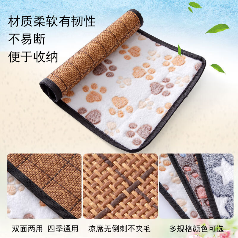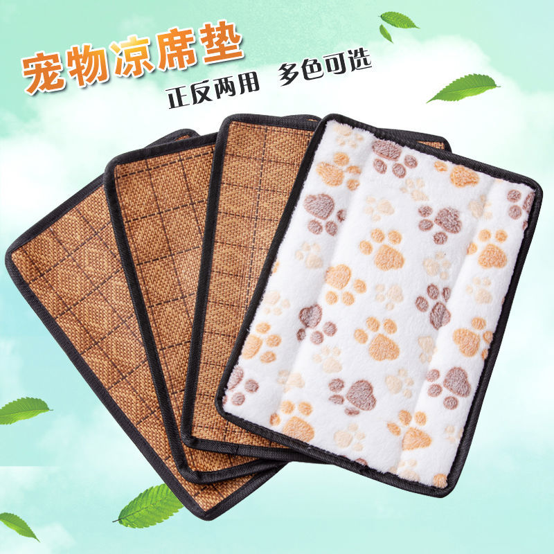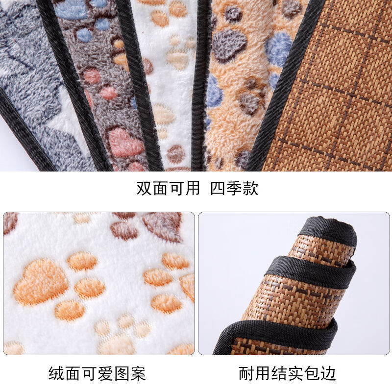 宠物四季垫子狗狗凉席春季降温猫咪不粘毛猫狗窝垫睡觉垫夏季猫窝 四季法兰绒垫子乳白印-背面凉席 35*25cm