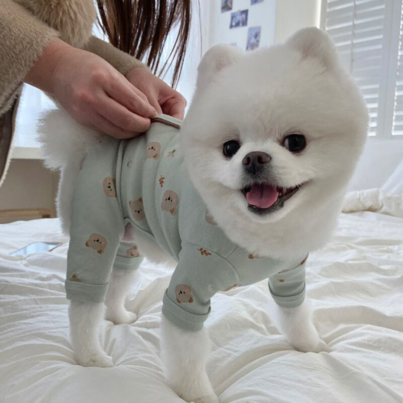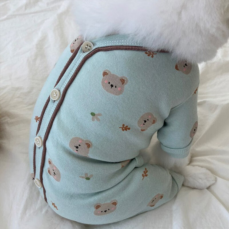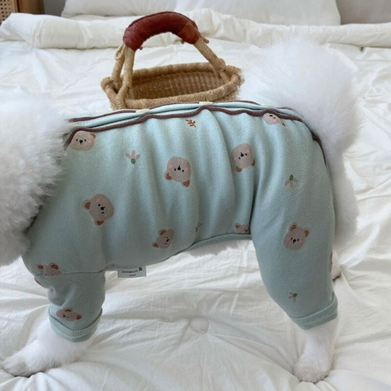 嬉皮狗(hipidog)小熊满印四脚家居服秋冬季保暖狗狗泰迪比熊小型犬猫咪衣服 蓝色 XS(建议体重1-3斤)