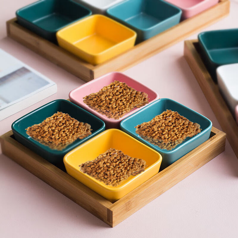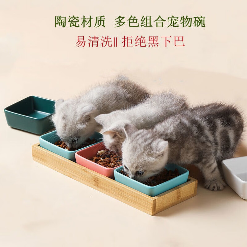 小猫咪专用的猫碗陶瓷双碗防打翻防漏食幼猫食盆保护颈椎宠物用品 混色请留言或者备注 3个碗 金属金色底座