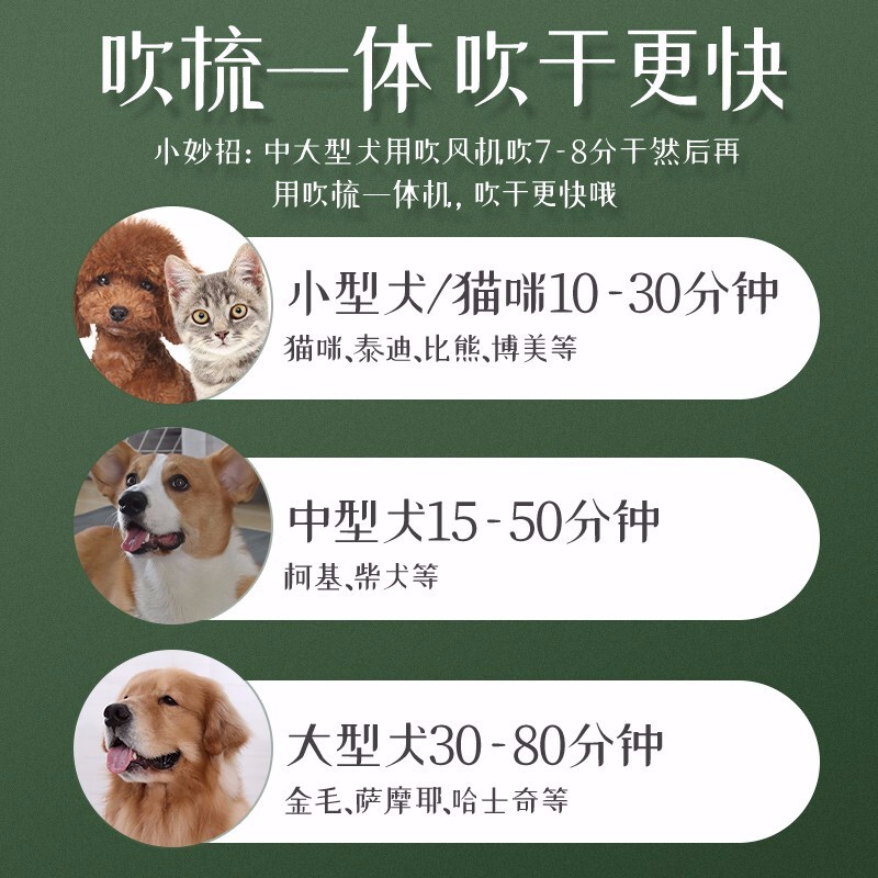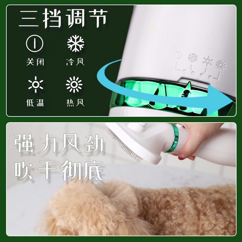 hoopet宠物电吹风机洗澡神器吹毛烘干速干狗狗猫咪用吹干拉毛一体梳 一键换头吹风梳