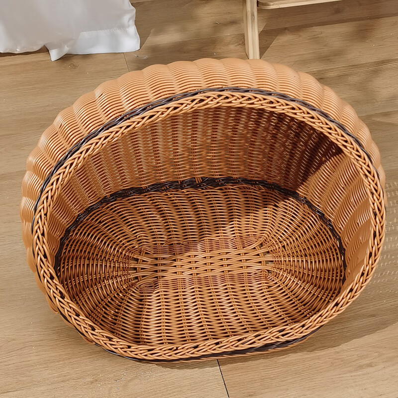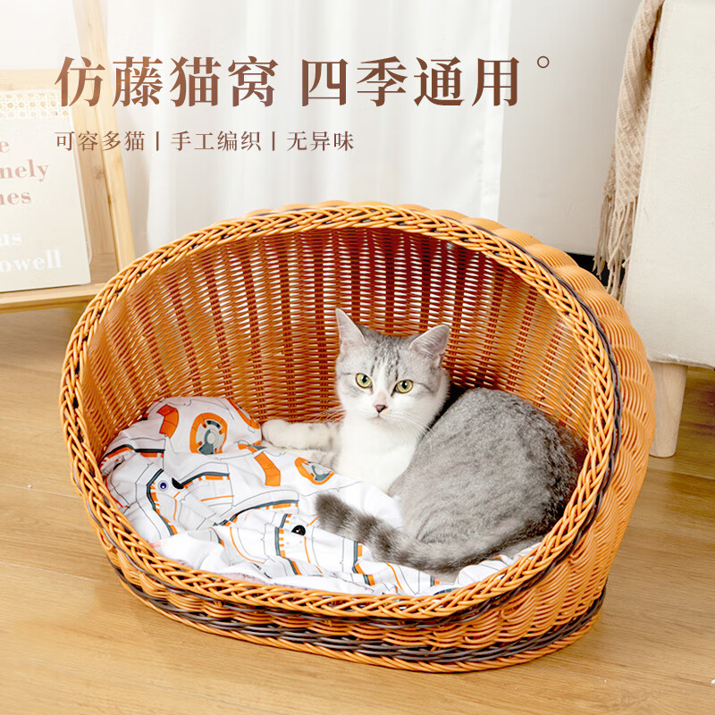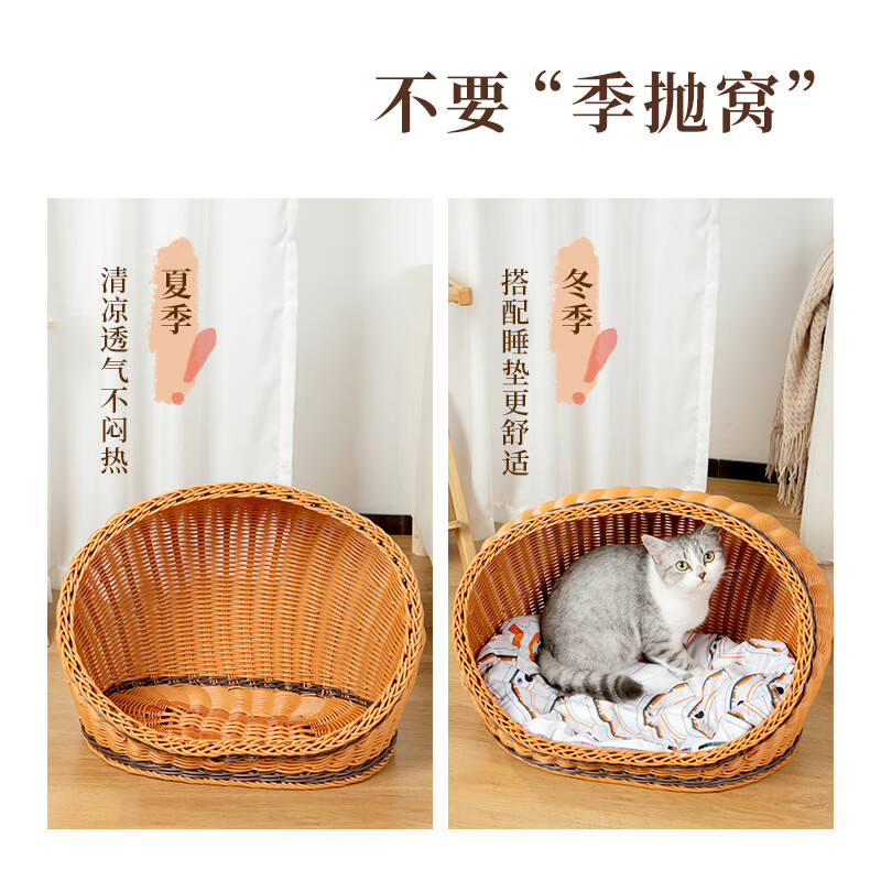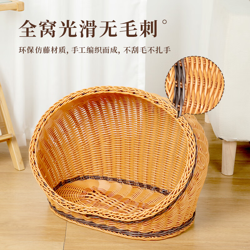 殊福傢藤编猫窝四季通用冬季保暖透气除臭可拆洗猫床猫笼狗床狗窝 藤编窝(半圆款) M-53*36*33cm(建议12斤内)
