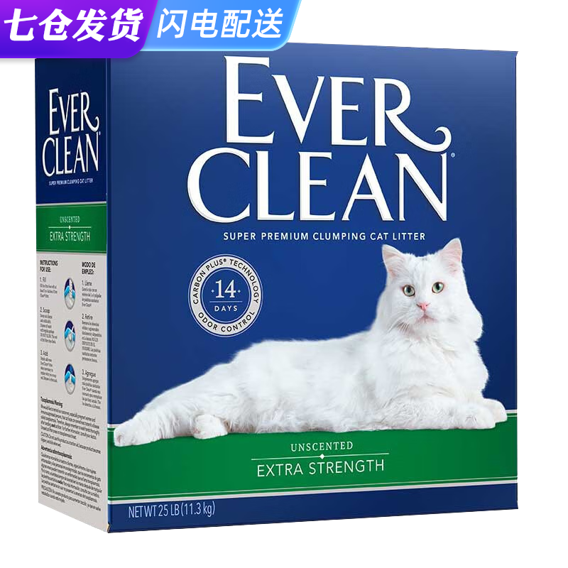 铂钻猫砂EverClean猫砂美国进口猫砂膨润土无尘活性炭除臭猫砂 [绿标] 舒敏猫砂25磅11.3kg