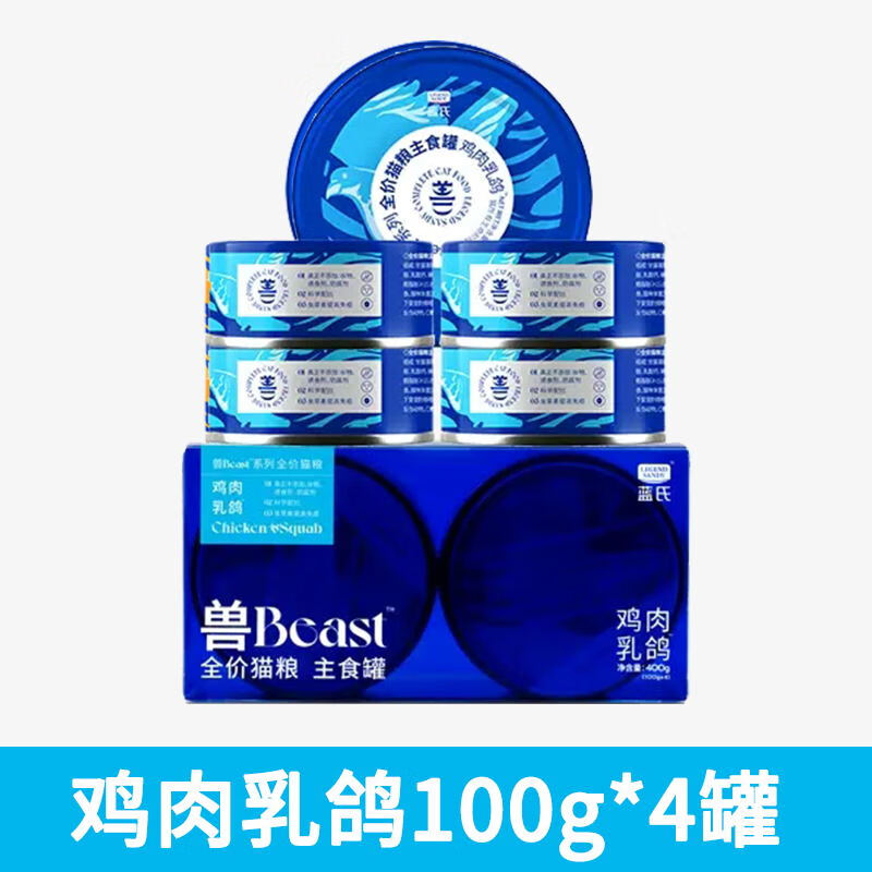 LEGENDSANDY蓝氏主食猫罐头猫咪猫粮零食罐乳鸽成猫幼猫全阶湿粮猫条营养发腮 4罐【鸡肉乳鸽】美毛秘籍兽主食 400g 100g礼盒装