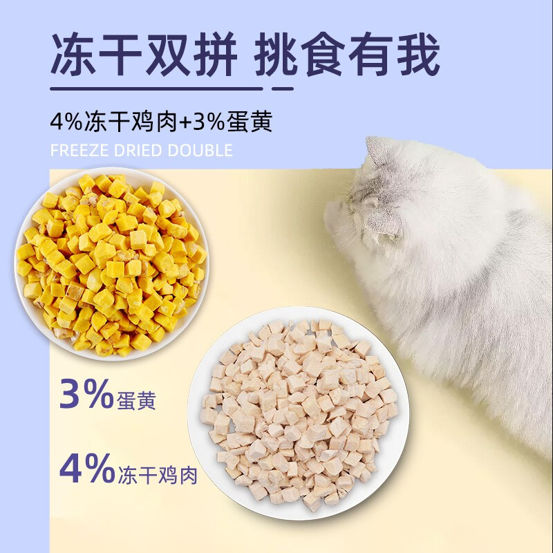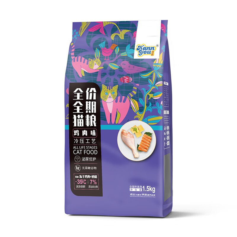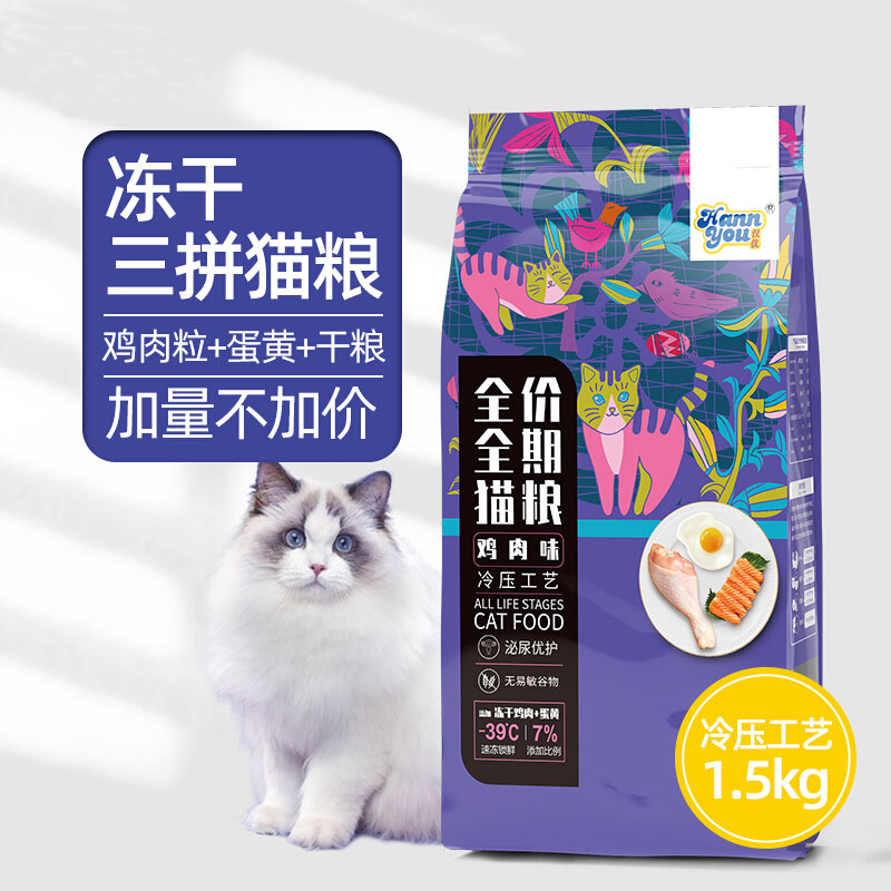 汉优 冷压全期猫粮 冻干鸡肉蛋黄双拼营养增肥幼猫成猫通用全价猫粮 1.5kg/袋