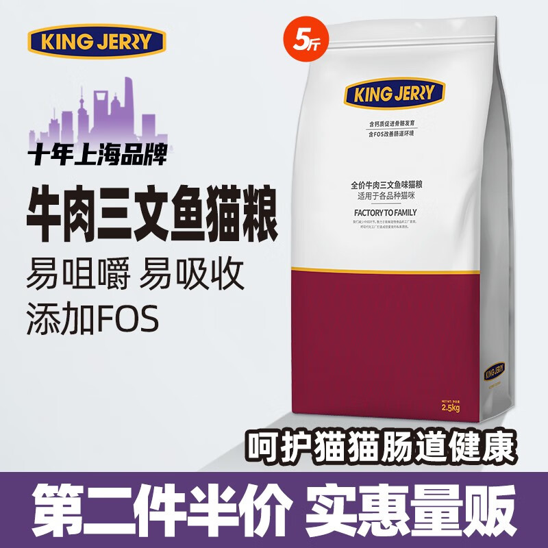KINGJERRY猫粮牛肉三文鱼味全阶段通用增肥营养全面健康 2.5kg