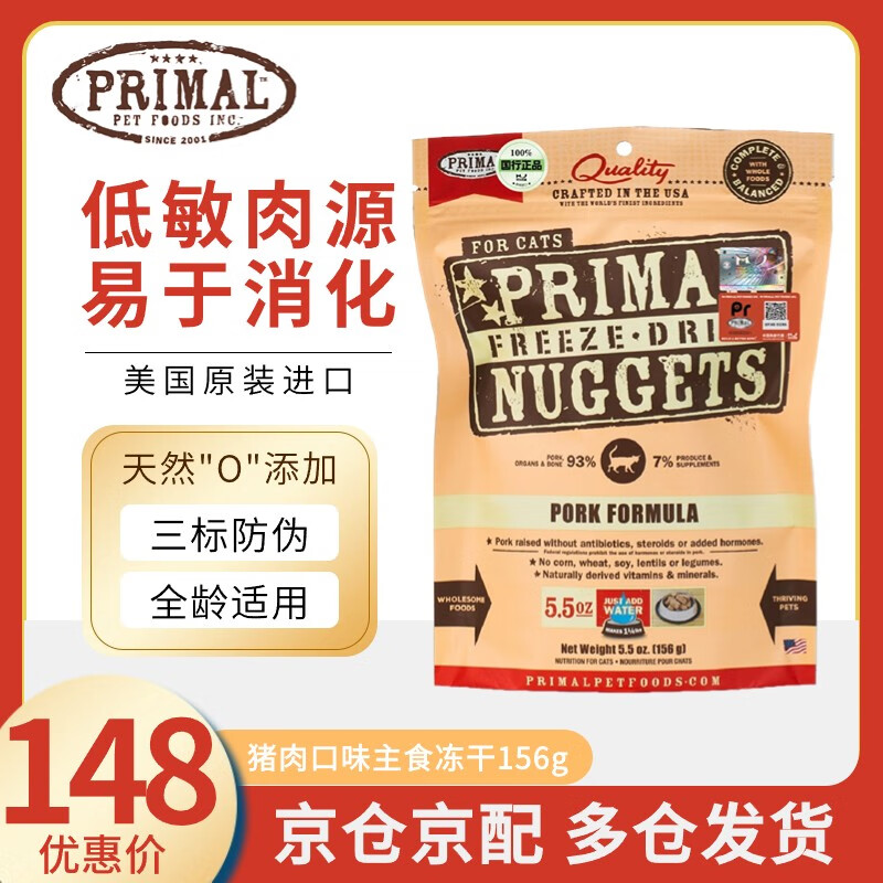 PRIMAL冻干猫粮Pr冻干猫主食成猫幼猫干粮进口有机冻干零食生骨肉 猪肉156g