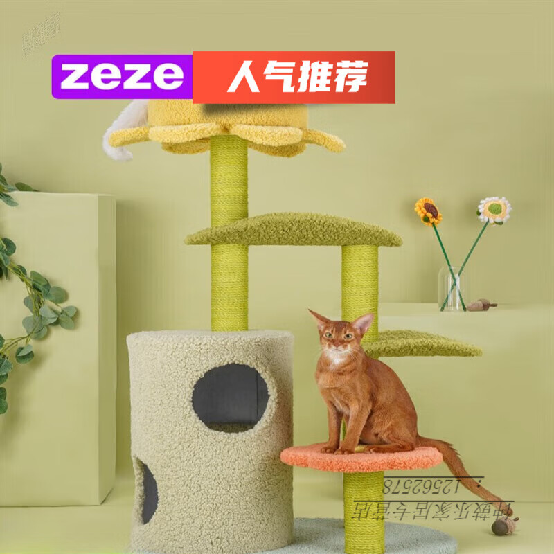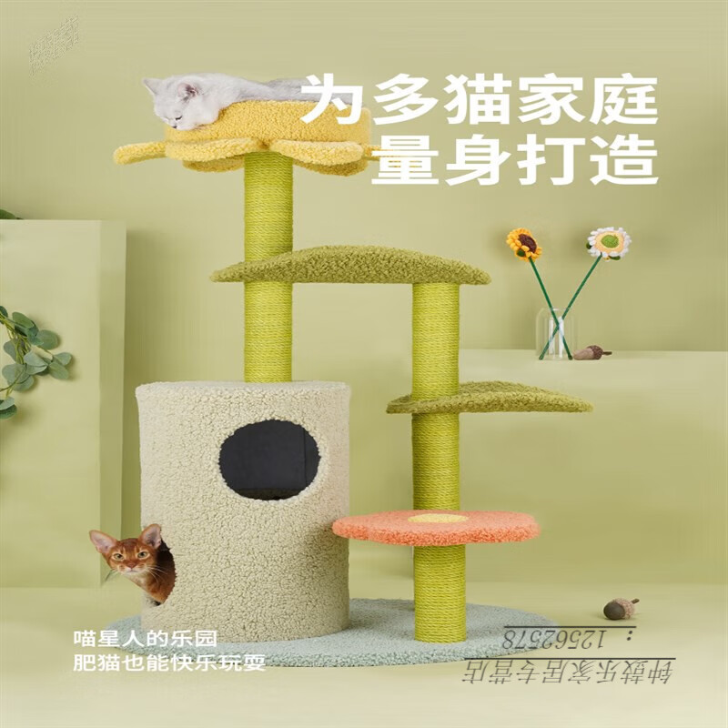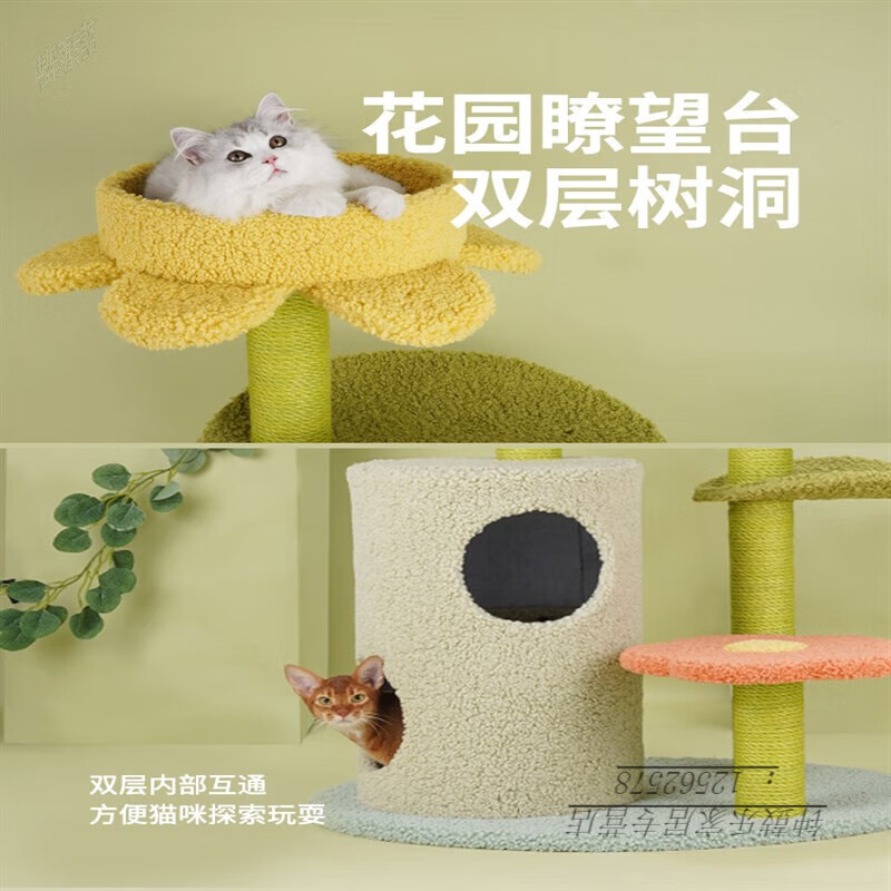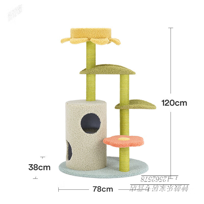 zeze荷叶猫爬架猫窝一体通天柱猫树猫架猫爬架猫爬柱多层爬架 艾朵拉花屋别墅(78*38*120cm)