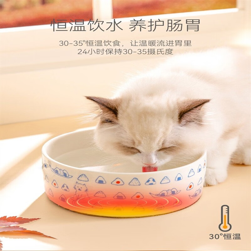 凛东猫咪饮水机恒温加热不湿嘴宠物自动饮水器循环流动狗狗喂水喝水器 猫咪款陶瓷恒温加热碗1200ml猫