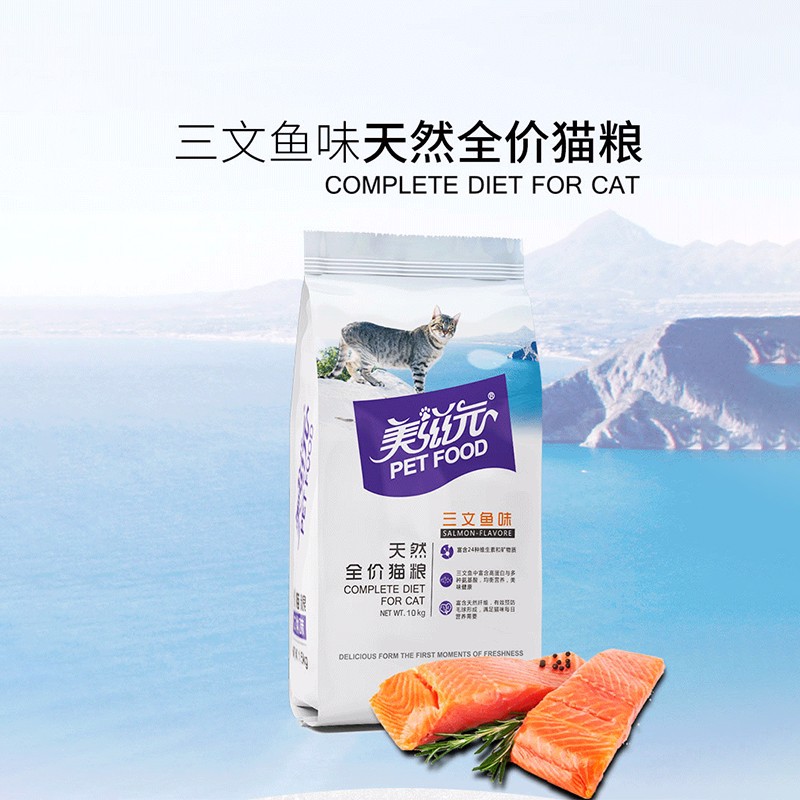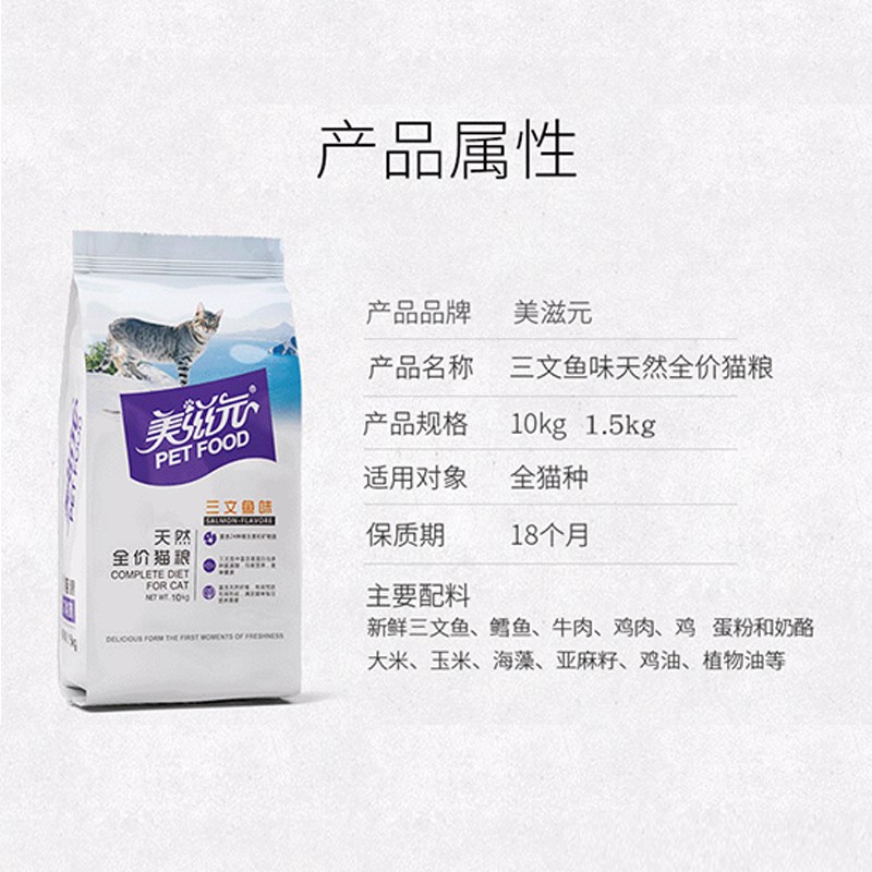 卷尾巴(CURLY TAIL)宠物猫粮美味三文鱼味牛肉味通用全营养型成猫粮猫咪主粮 猫粮10kg(三文鱼味)